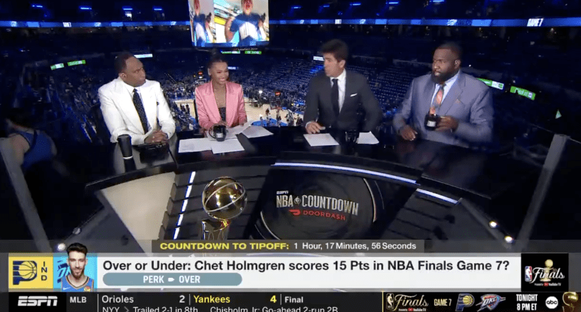 The irony of it all is that Kendrick Perkins was on hand last night in Oklahoma City as part of the ESPN crew broadcasting the game. At halftime, Perk let some of his former OKC Thunder allegiance step in when he said “Chet Holmgren and J-Dub, ya’ll gotta step the hell up.“