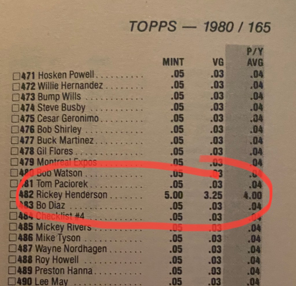 The handful of magic beans I received that day for my two Hendersons is still a hazy memory, and I’m probably better for that fact. I would like to think I received something of equal or better value that day, but the memory of my friend Tim showing one of our friends the value of the Henderson cards in my Beckett Price Guide after our trade that day leads me to believe I was probably suckered by a few later year Bobby Murcer or Rod Carew cards (two of “my guys” back in 1984; Carew because he was a future Hall of Fame hitting machine, Murcer because I had his autograph and he was a native Oklahoman like myself). Whatever the transaction, I am almost positive I was on the losing end of it then and now.